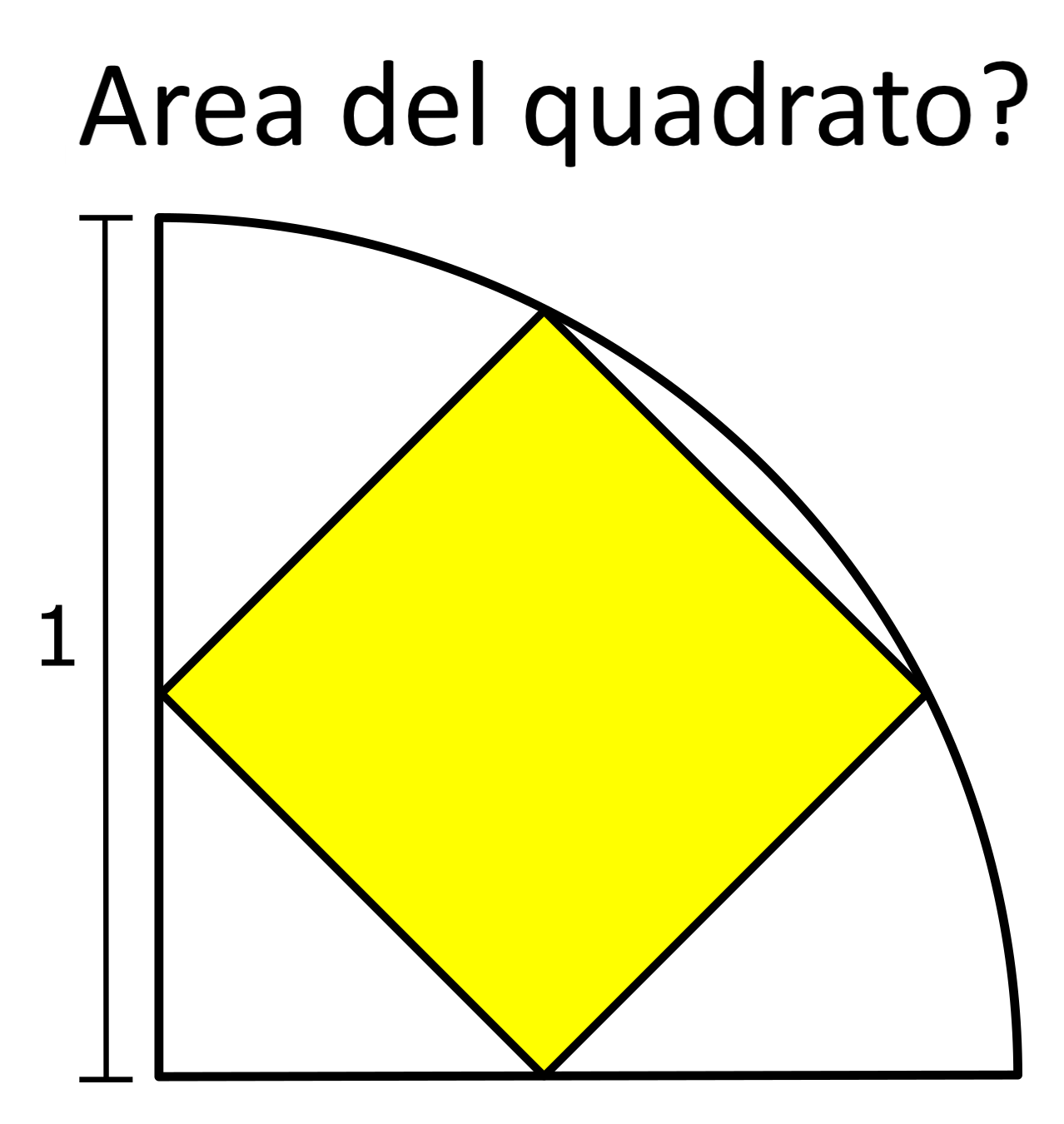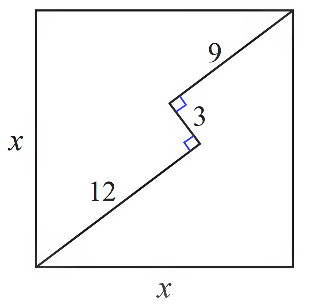 Trova la misura x del lato del quadrato. Gli angoli in blu sono retti.