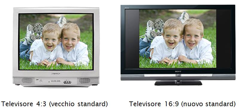 vista su un televisore di formato 4:3 e su uno di formato 16:9.