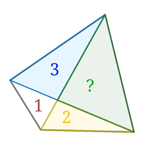 Quanto misura l'area "?" ? (1,2 e 3 sono le aree dei tre triangolini)